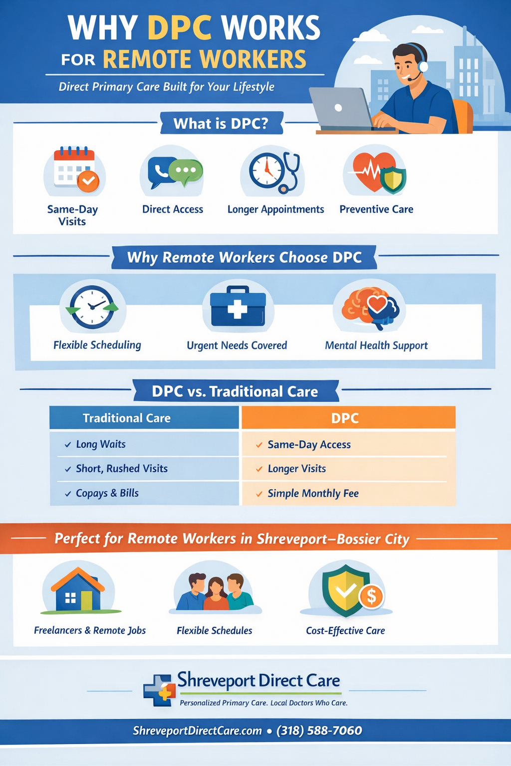For remote workers in Shreveport and Bossier City, DPC provides modern healthcare that actually fits how you live and work.